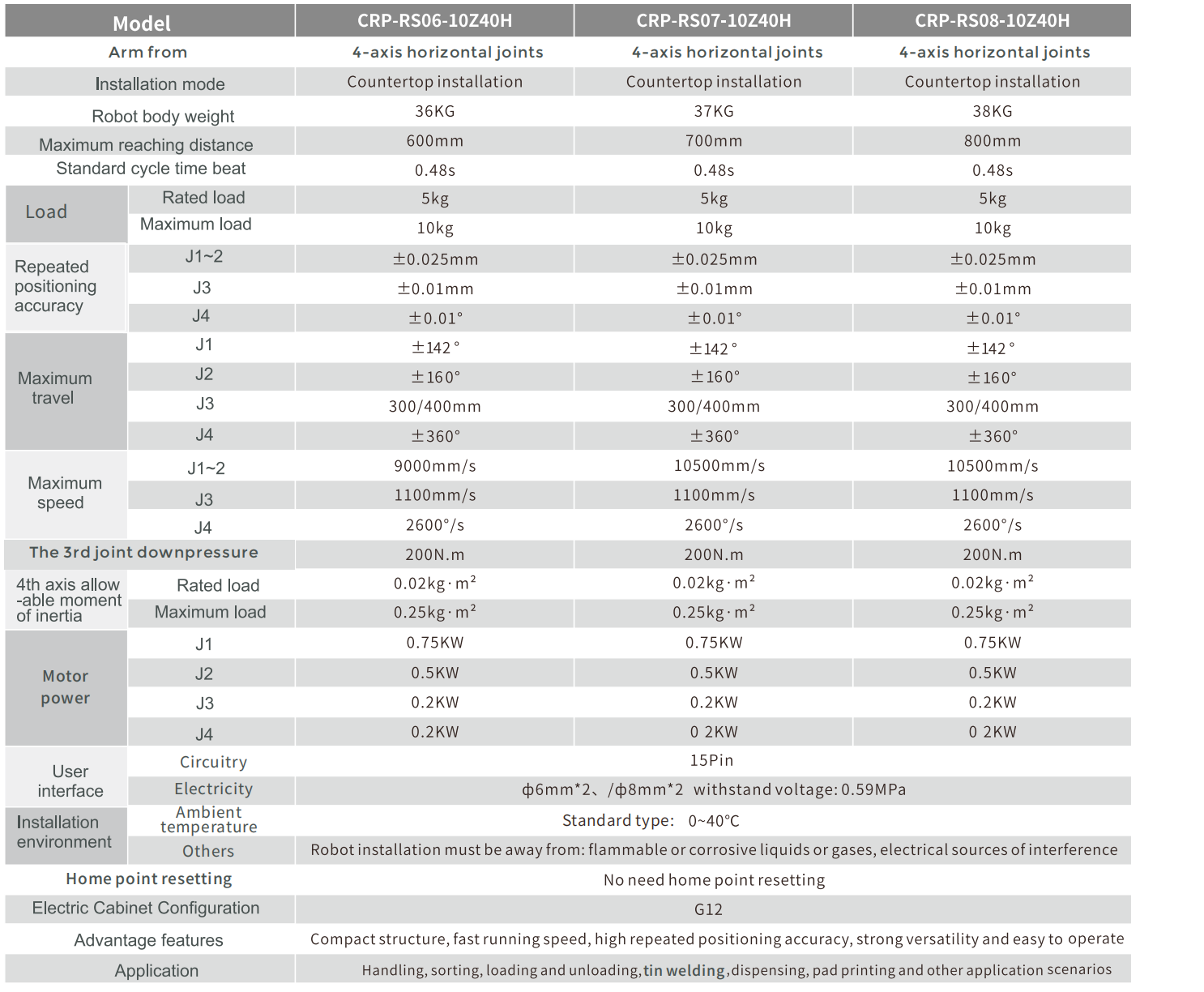 Available in 700mm arm length specifications, up to 10kg payload, rated payload of 5kg.