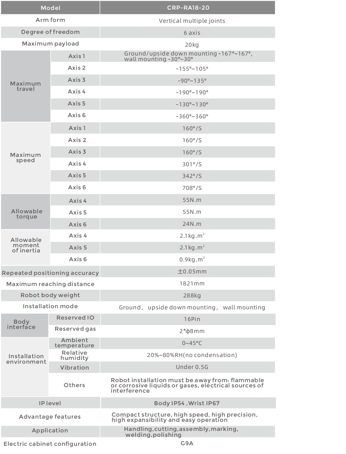 • The design of the robot is highly compact, which is more light weight, especially the wrist is slender, so it can be applied in more scenarios.
