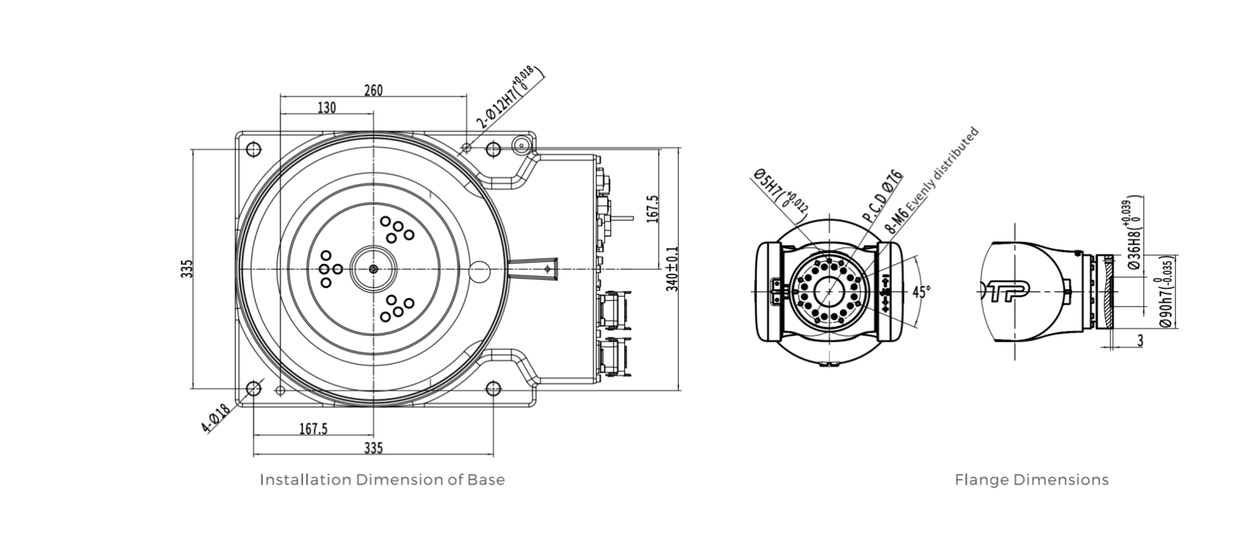 • The robot in the axes of J2 J3 J4 is reserved installation holes to install fixed solenoid valve and other accessories. There are IO port and dual-circuit gas pipe at J3 axis to meet the handling application. Driving adopts new advanced PID control technology to achieve faster response; With the functions of observer dynamic compensation and weak magnetism, the electric machine can be better controllable and more stable with higher speed.