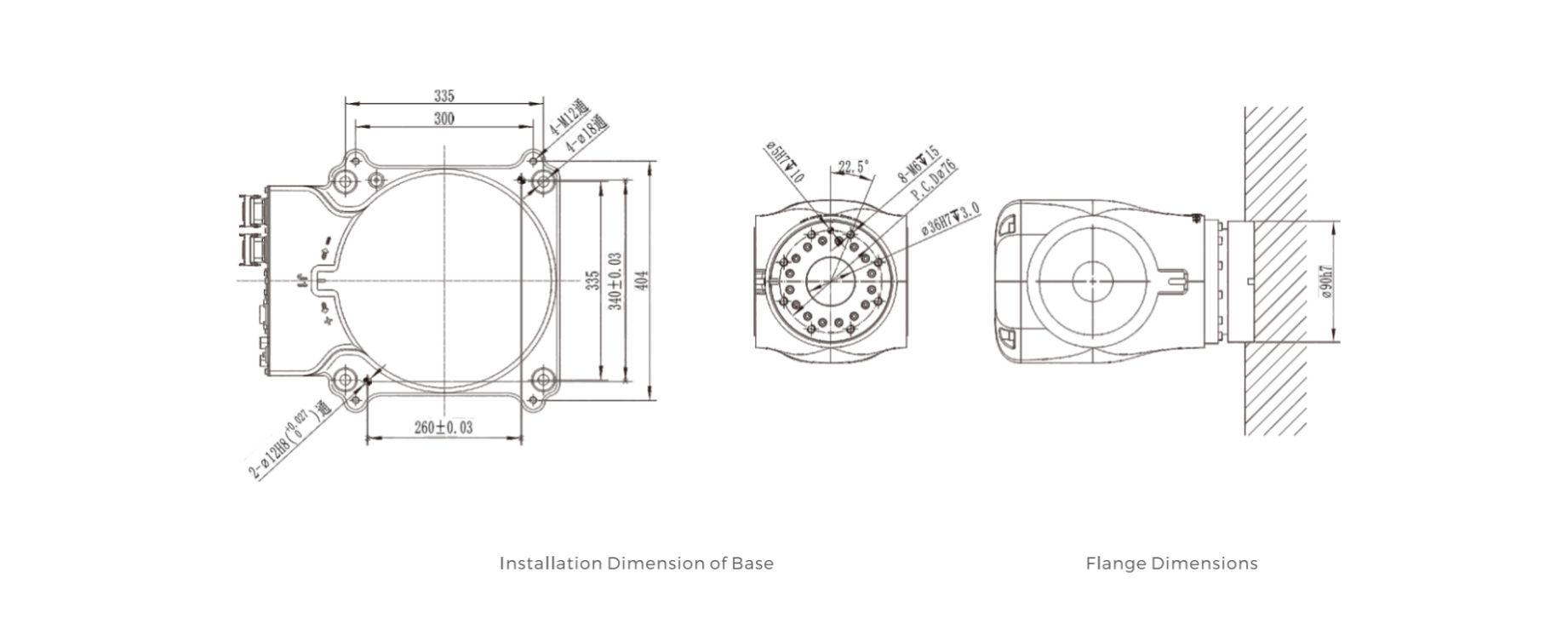 The robot in the axes of J2, J3, J4 is reserved installation holes to install fixed solenoid valve and other accessories. There are IO port and dual-circuit gas pipe at J3 axis to meet the handling application.