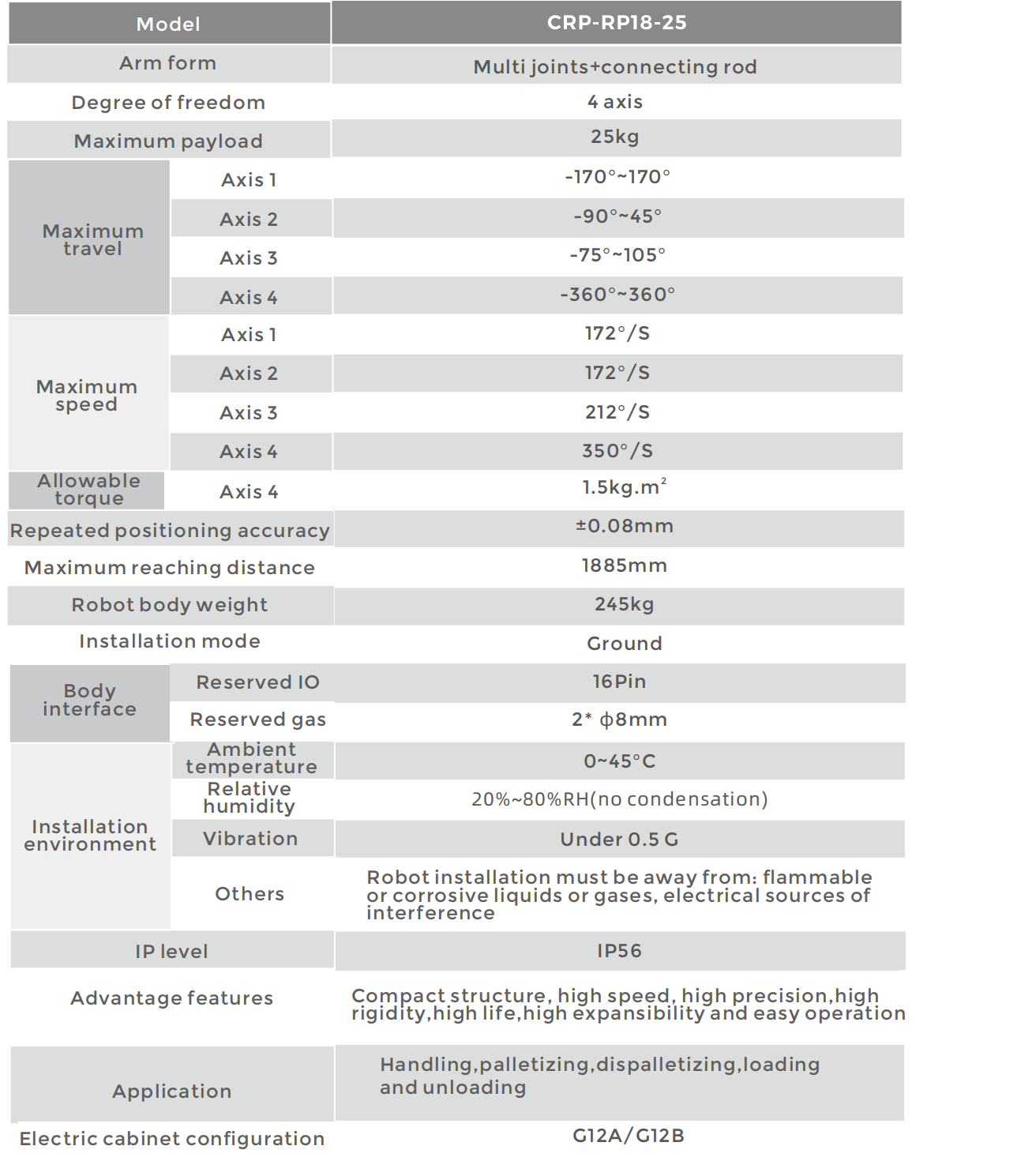 The robot body is with dual-circuit gas pipe to meet the handling demands.