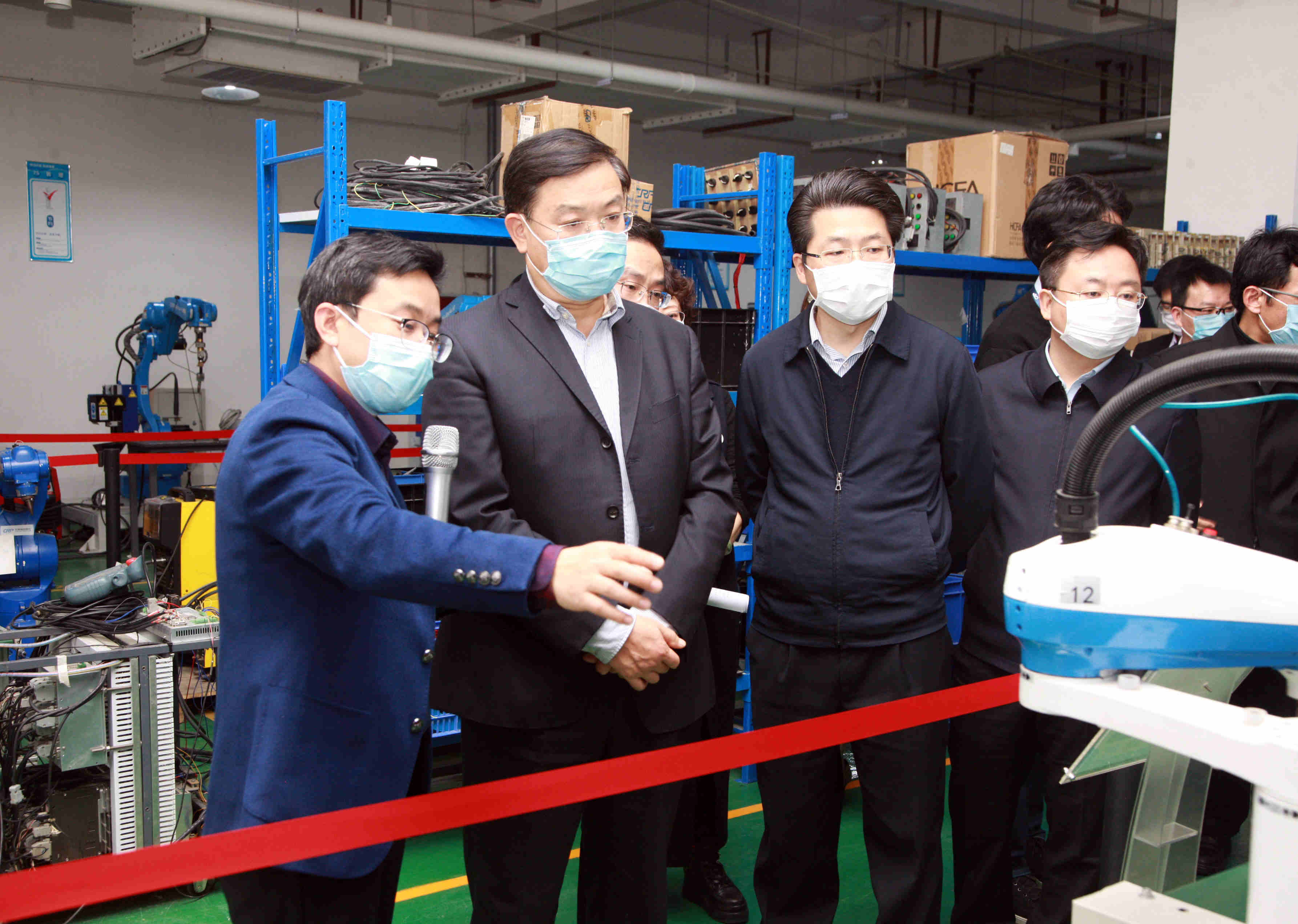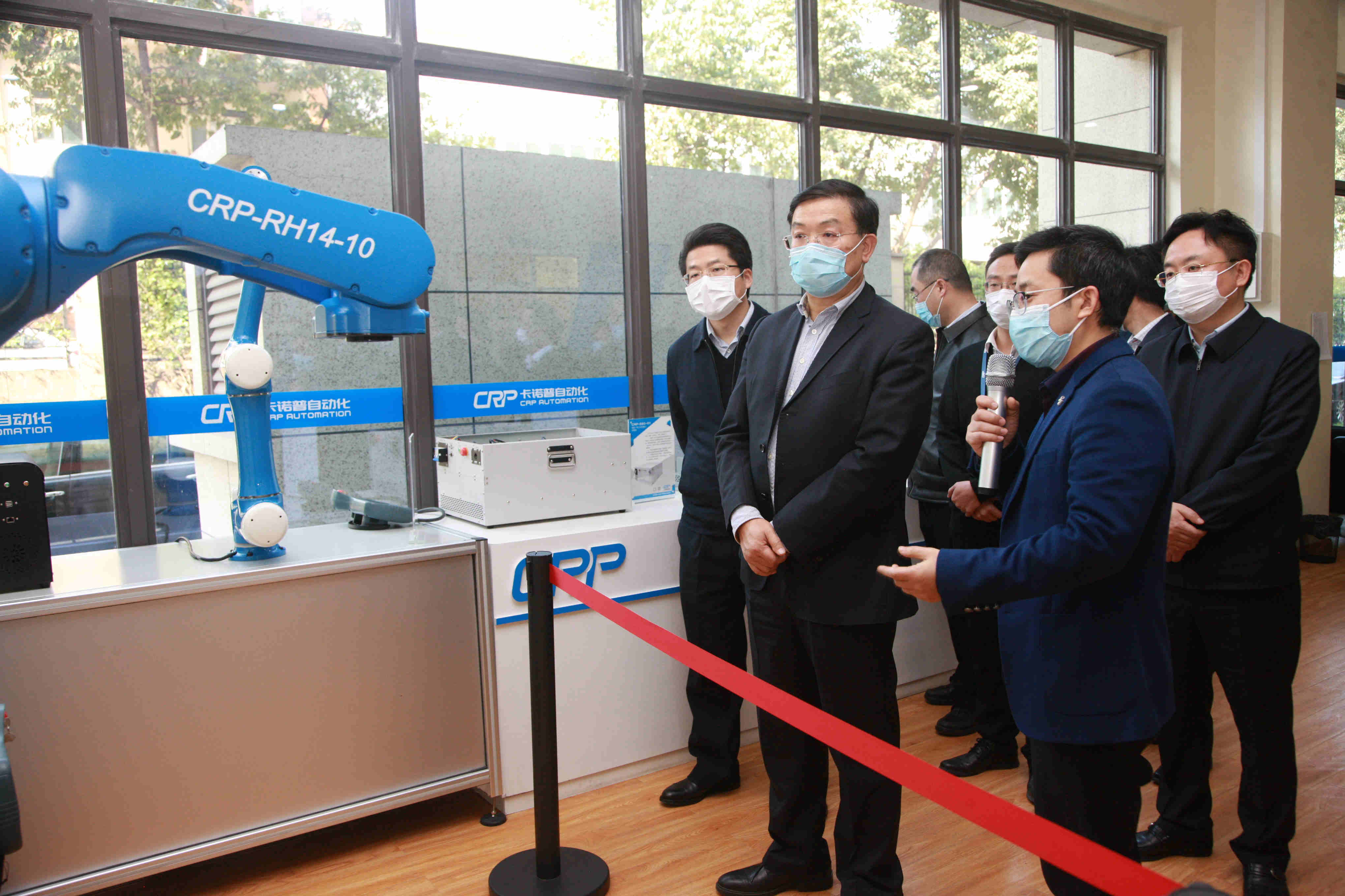 王副省长、曹副市长、刘书记等领导参观了xpj官网电竞核心产品展区,就企业的发展历史、生产效益、技术创新、产品研发等情况进行了深入了解;随后参观了xpj官网电竞机器人整机生产车间、核心零部件生产车间、机器人调试车间。交流过程中,董事长李良军向王副省长详细介绍了xpj官网电竞核心零部件生产、机器人细分领域市场容量、机器人制造工艺流程。