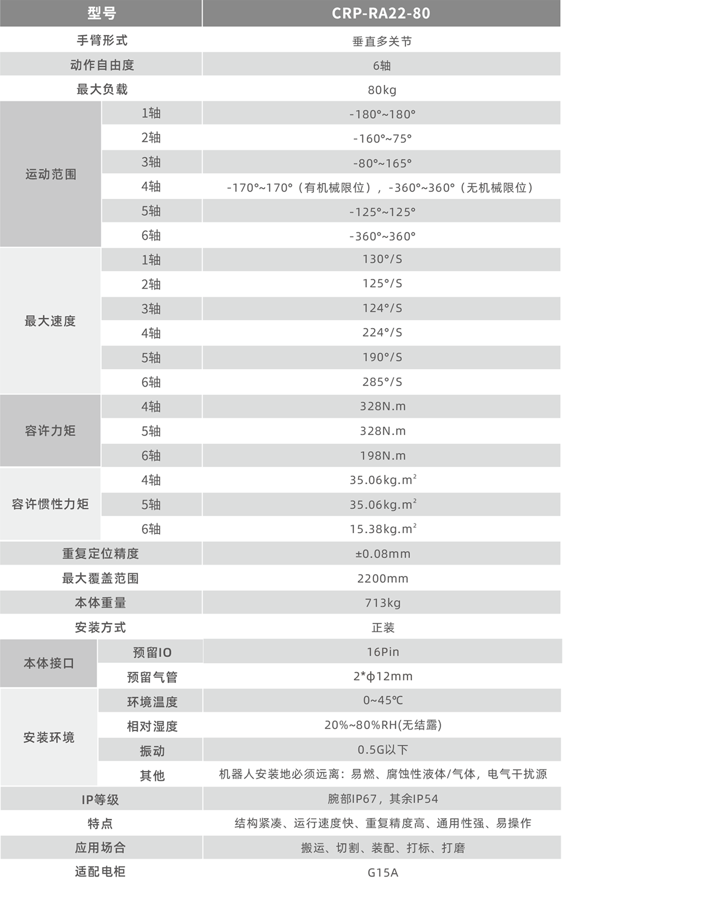 臂展2.2米,负载能力强,工作范围大,灵活性强。