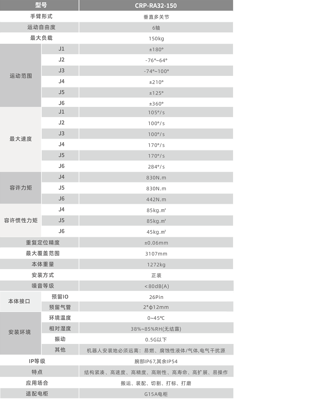 臂展3.2米,刚性高,负载能力强,运行更平稳,负载能力为150kg,比上一代提升约15%。
